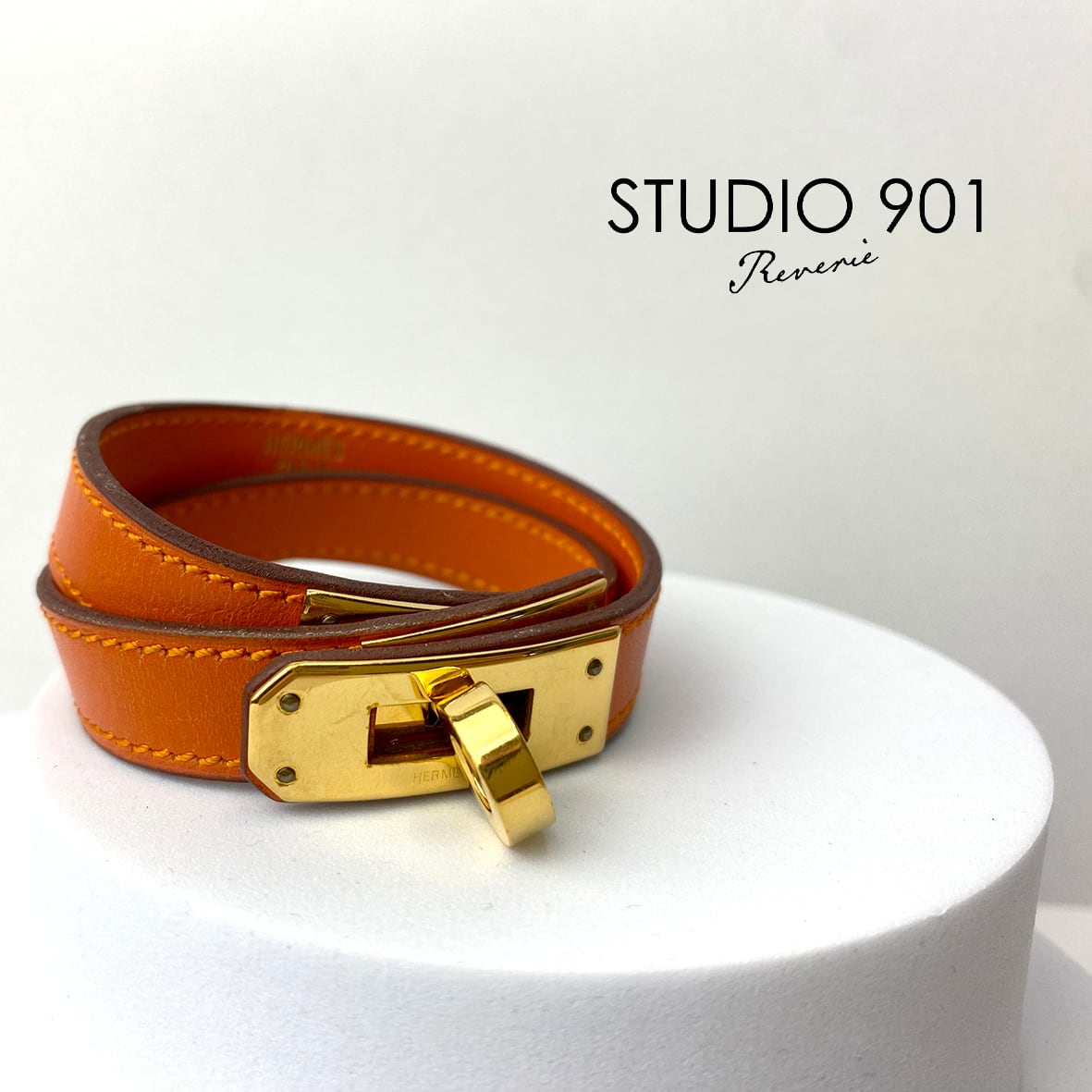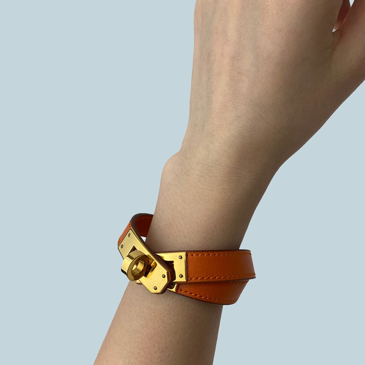エルメスのアイコンバッグ〈ケリー〉のクロージャーを模した「ケリー・ドゥブルトゥール」ブレスレット。