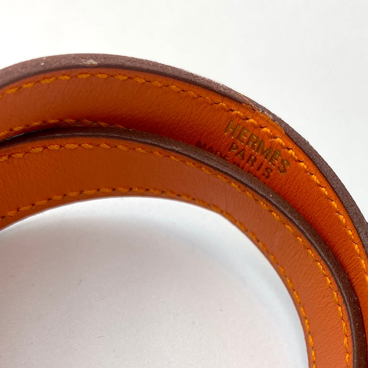 F刻印(2022年製)入りの本モデルは、上質なレザーを二重に巻き、手元にさりげない気品とエッジを添えるデザイン。ゴールド金具が温かみのあるブラウンレザーと好相性で、カジュアルからエレガントまで幅広くマッチ。