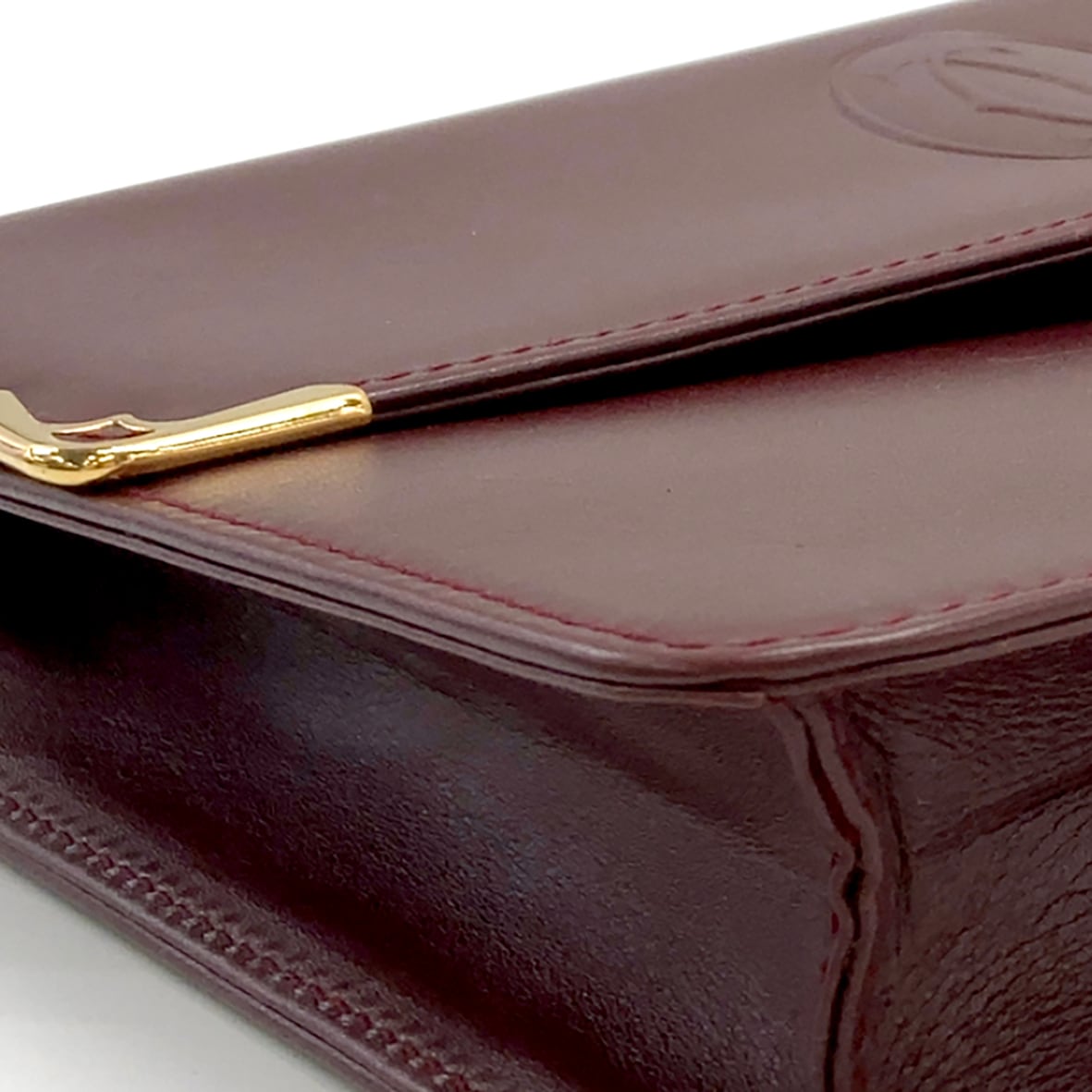 カルティエの「Must de Cartier」コレクションより、艶やかなボルドーカラーが印象的なヴィンテージクラッチバッグ。