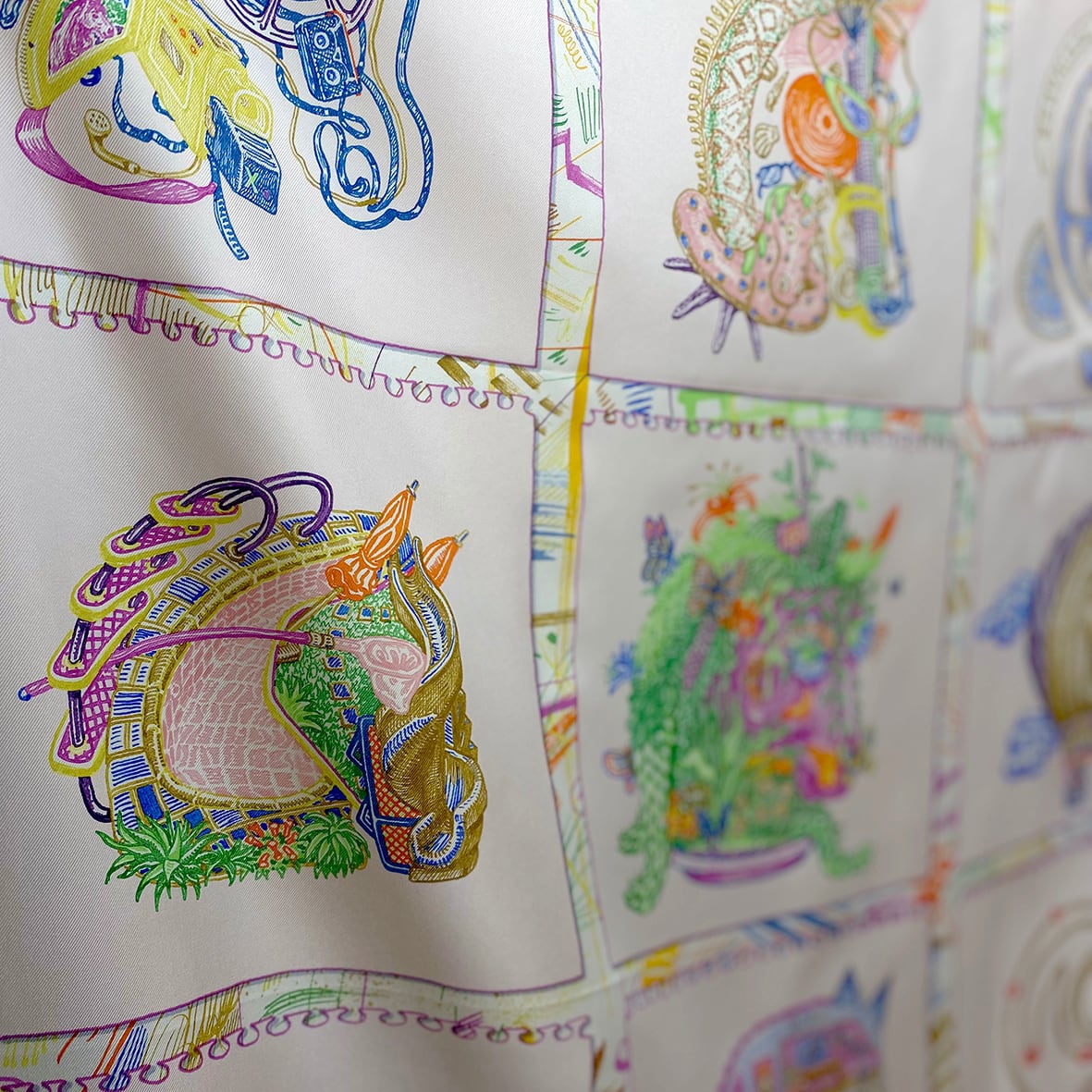 HERMÈSを象徴する馬モチーフを、15種の異なるアートスタイルで描いたカレ90《Chevaloscope(シュヴァロスコープ)》。