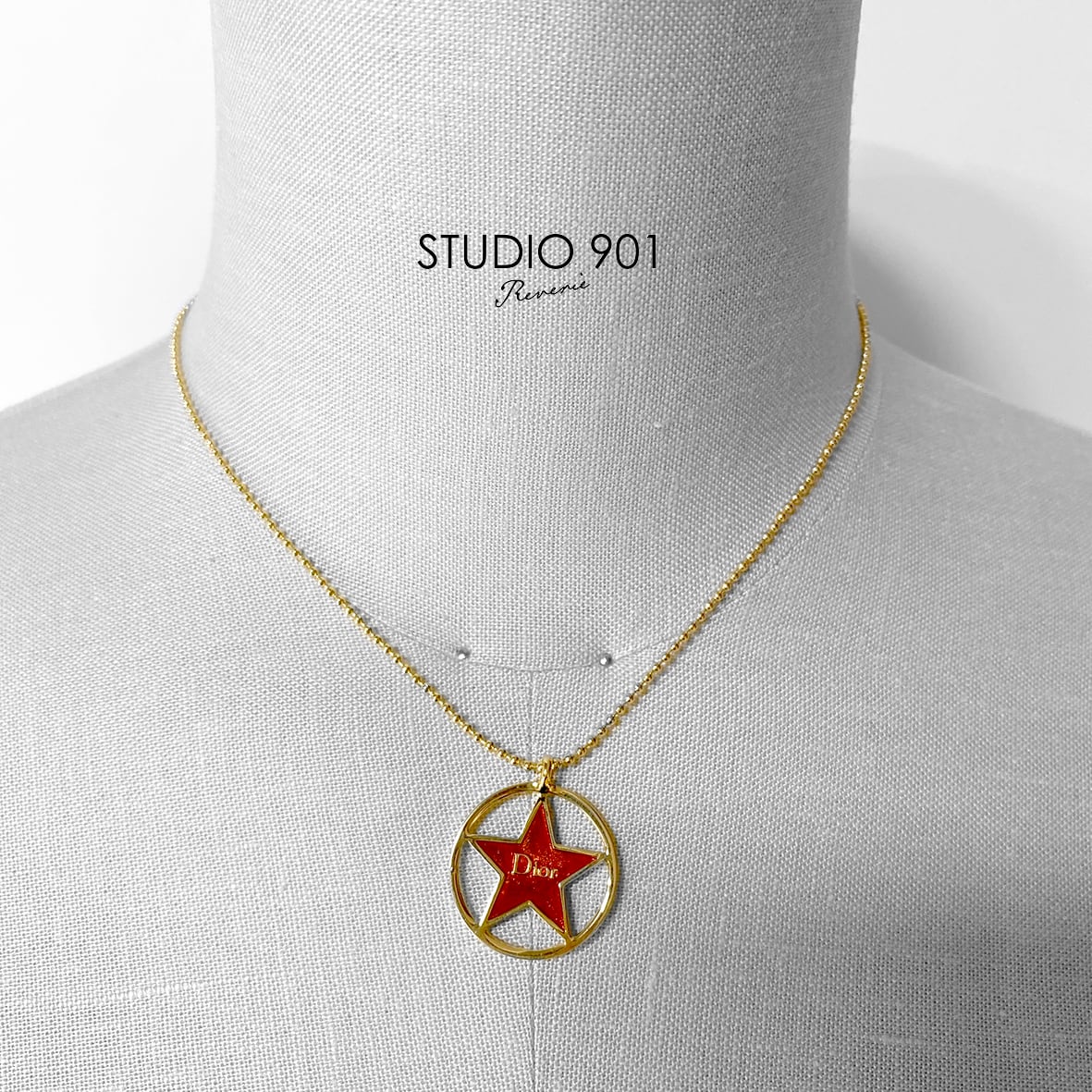 円形フレームの中に五芒星を配した、Christian Diorらしい遊び心とアイコニックさを兼ね備えたネックレス。