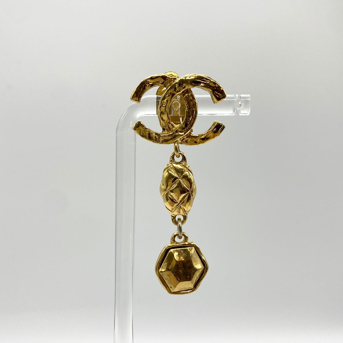 立体的なココマークに、キルティングモチーフとヘキサゴンパーツを組み合わせた存在感あるスイングデザインです。