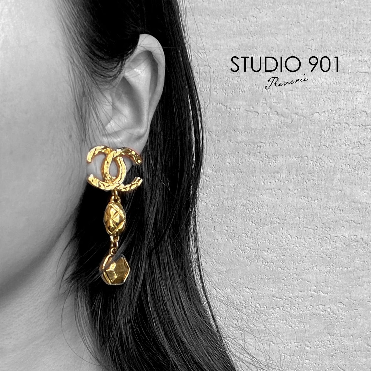 動くたびに揺れるゴールドの輝きが顔まわりを華やかに演出。