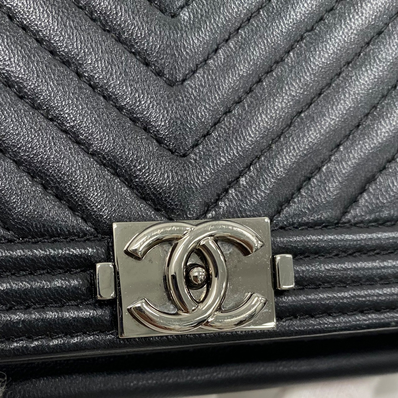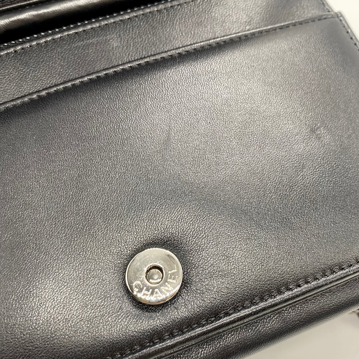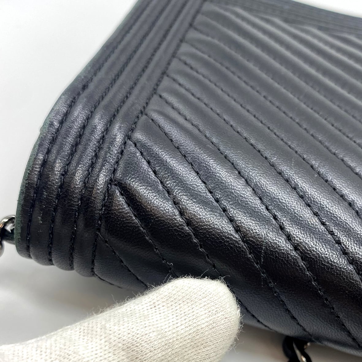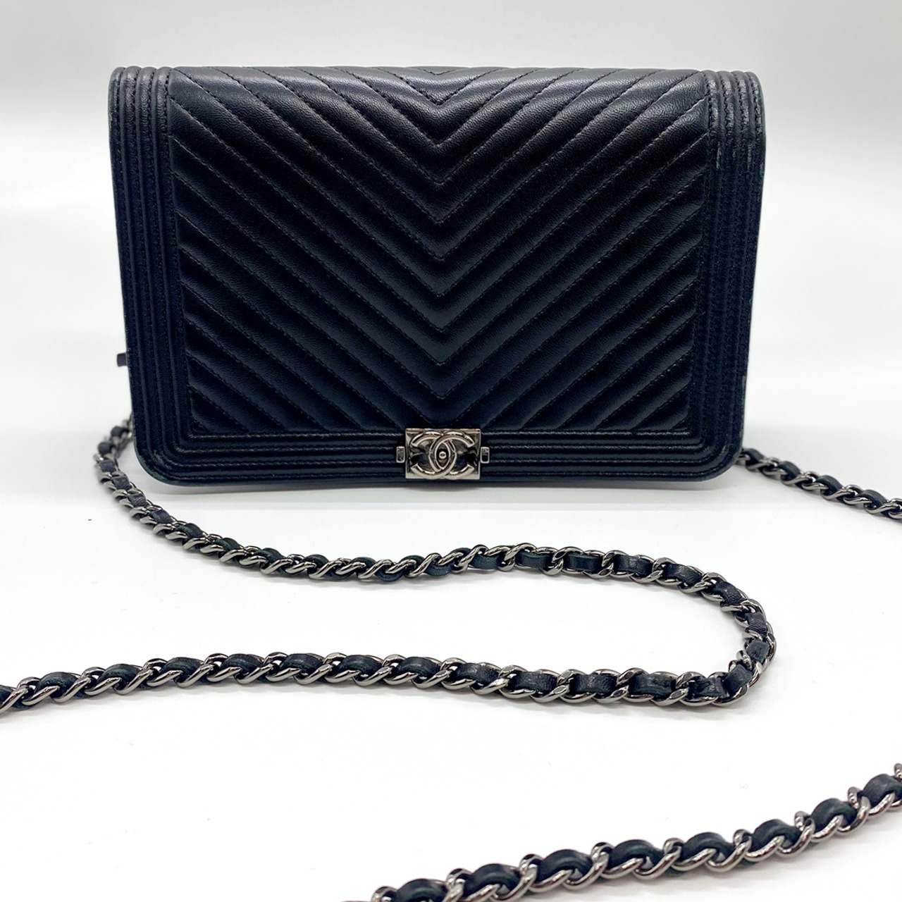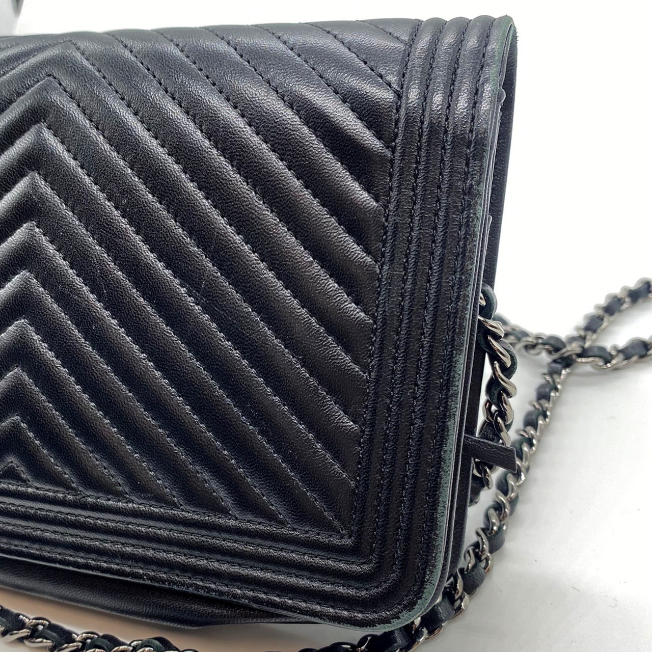 CHANEL ボーイシャネル チェーンウォレット Vステッチ ブラック ラムスキン 620201