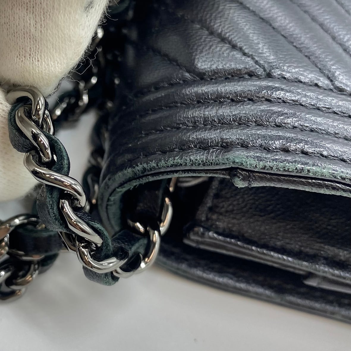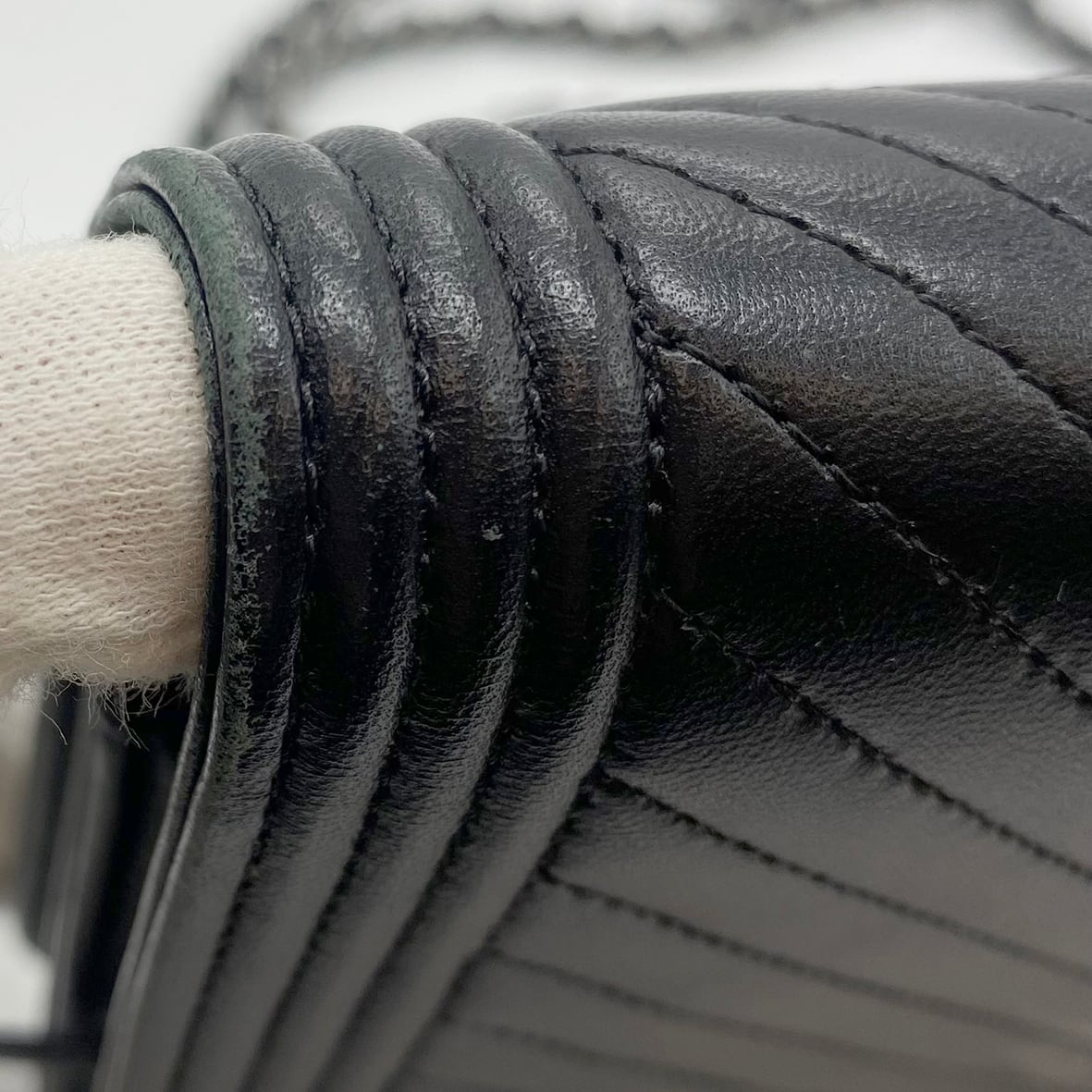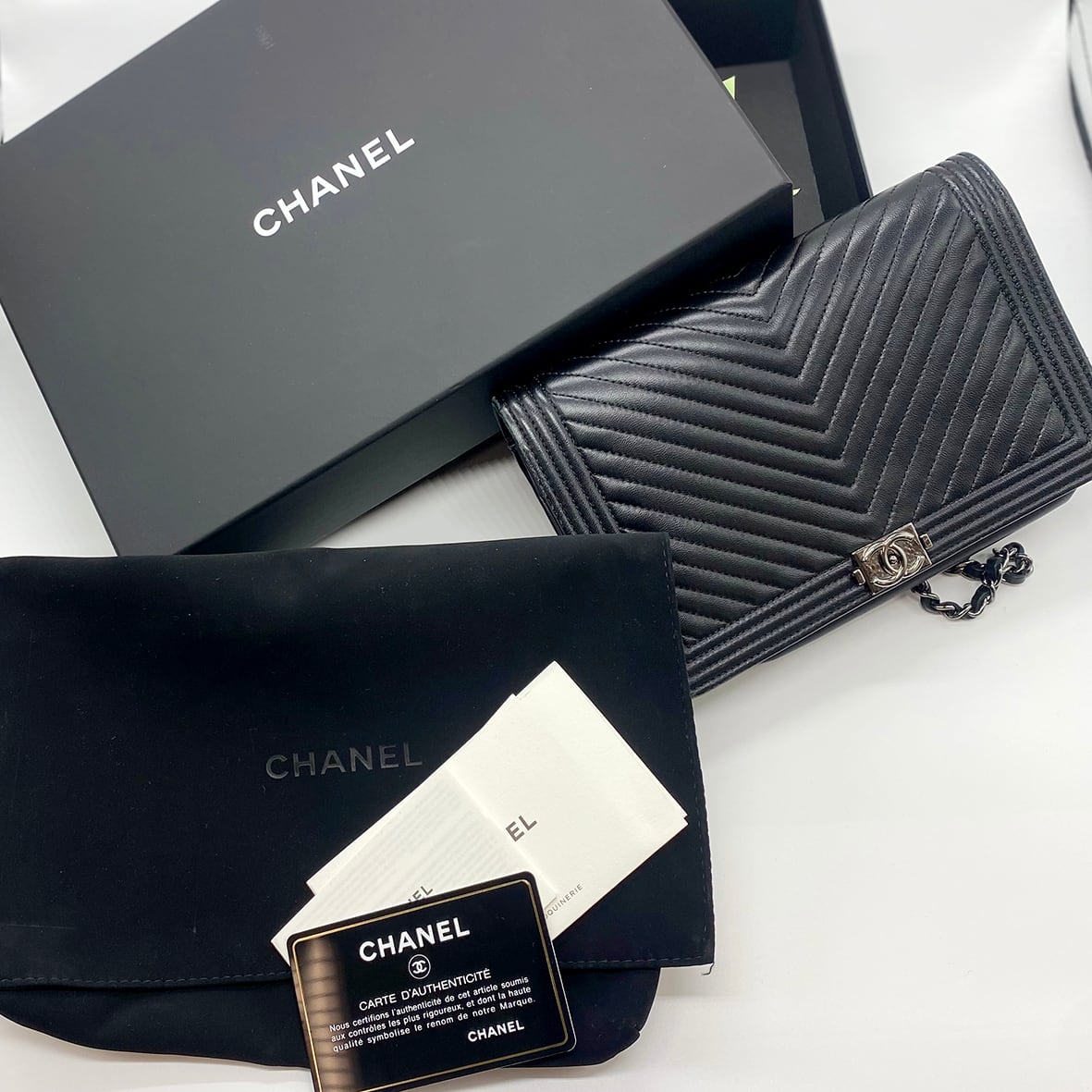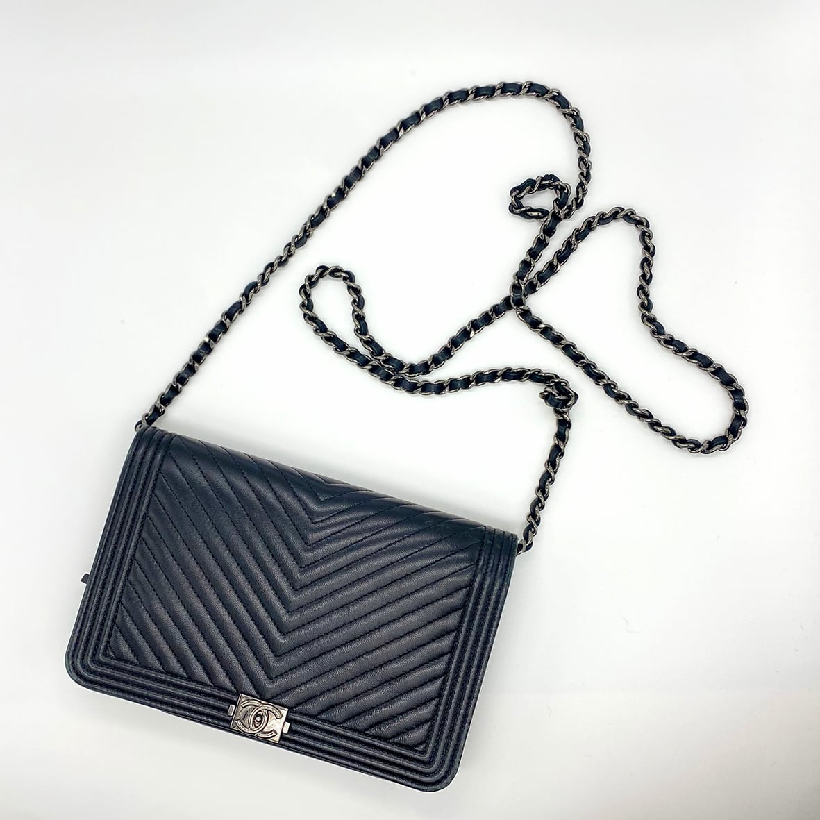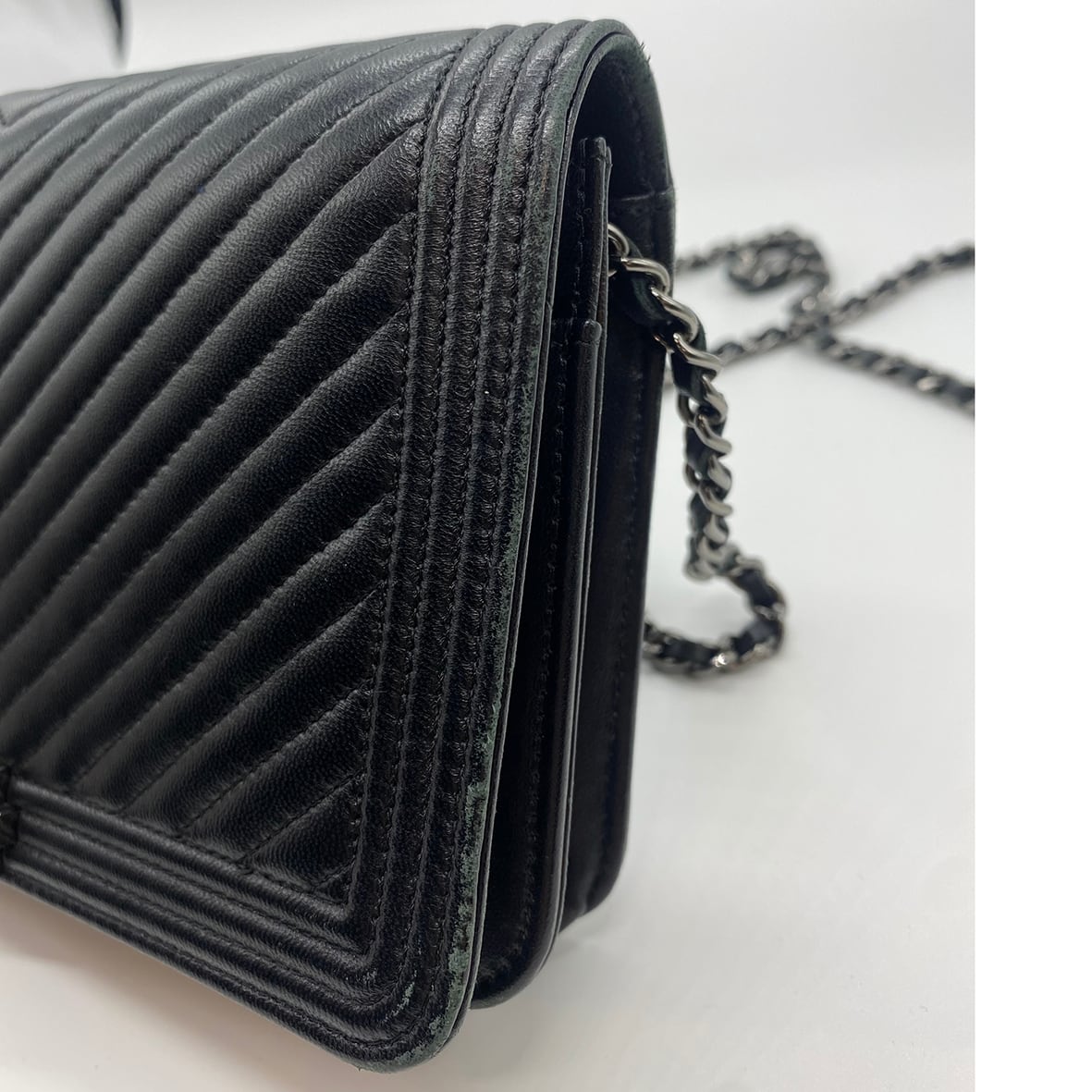 CHANEL ボーイシャネル チェーンウォレット Vステッチ ブラック ラムスキン 620201