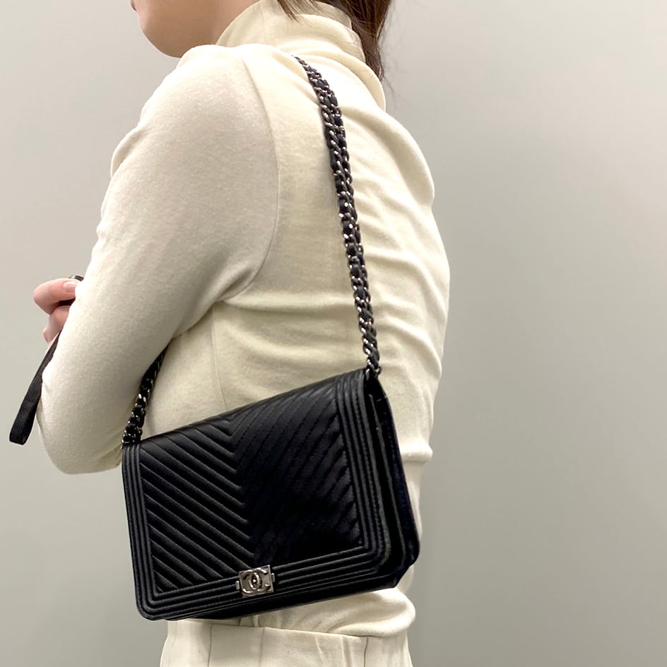 シャネルの人気ライン「ボーイシャネル」のチェーンウォレットです。