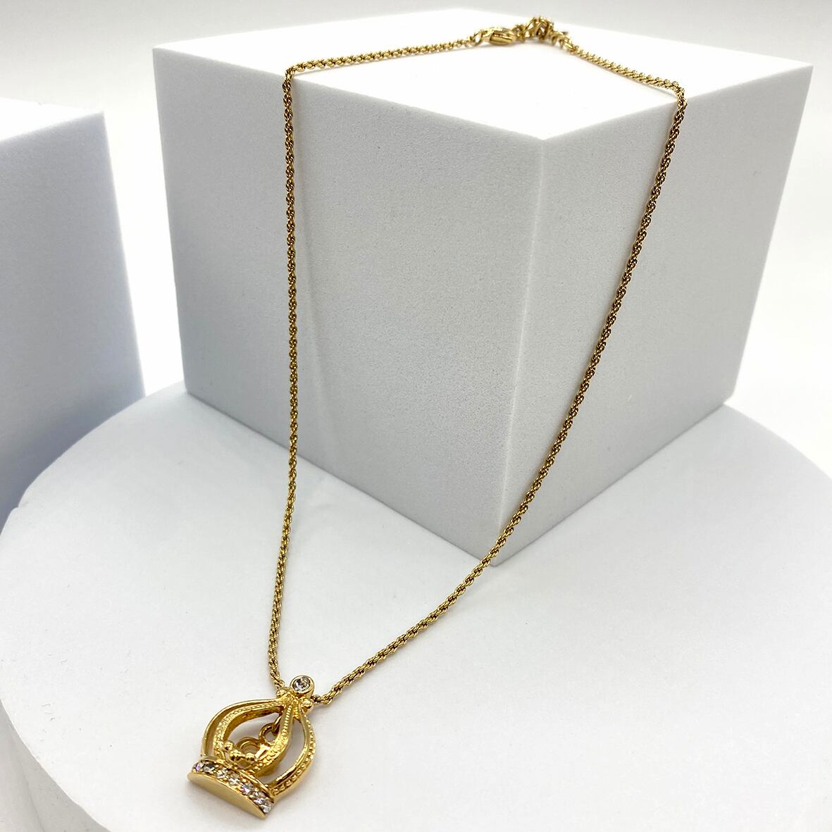 Christian DiorのCDロゴを内側に配したクラウンモチーフが印象的なネックレス。